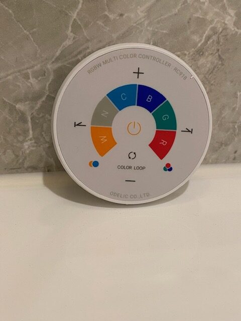 リニューアルした浴室カラー照明はリモコン操作で色を変化させたり、
